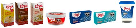 Marca de volume e abrangência nacional da BRF, a Elegê oferece uma linha completa de leites, que inclui as versões UHT Integral, Semidesnatado, Desnatado e Leites Especiais (Ferro, Cálcio, Baixo Teor de Lactose), além de leite em pó lata e sachê. A marca também produz bebida láctea, doce de leite, leite condensado, creme de leite, manteiga, molho e requeijão. Mantém também a linha Bob Esponja, dedicada ao público infantil. Entre os produtos comercializados estão: petit suisse, aromatizados (chocolate e morango), flan, leite fermentado, entre outros.