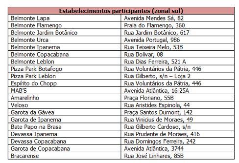 “Selecionamos os melhores estabelecimentos da cidade e criamos uma rota gastronômica”, ressalta Christiane Dorigon, diretora de marketing do Food Services da BRF. “Veloso, Garota de Ipanema e Belmonte estão entre as opções que endossam o roteiro”, completa a executiva. Guias com a localização dos 20 participantes serão distribuídos pela cidade e em algumas frotas de táxi.